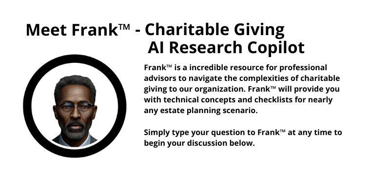 • Frank™ for Advisors — the advisor’s expert research assistant for complex gifts